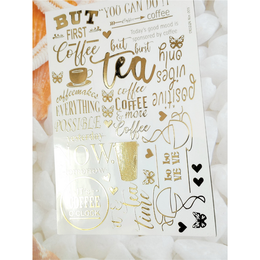 Tea & Coffee Embossed Sticker sheet A5 - D8